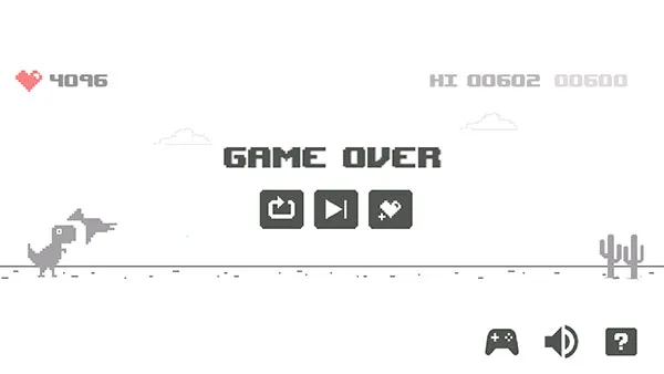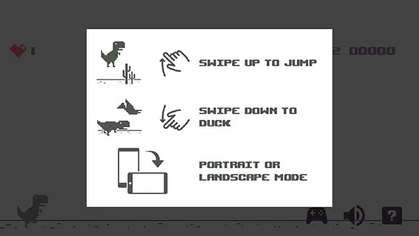 5、若遇到空中难以跳过的翼龙,玩家可以选择向下滑动屏幕,让小恐龙以蹲姿躲避。